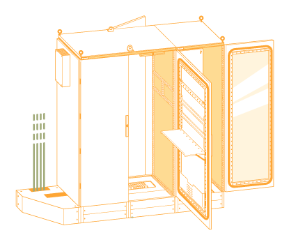 Двери: сплошные металлические или распашные. Возможность реализации двухстороннего обслуживания шкафа Altis путем замены задней панели на дверь.
