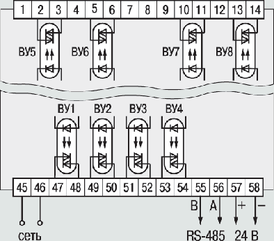 | Схема подключения транзисторных оптопар в приборе модификации ТРМ138В-К |