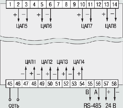 | Схема подключения ЦАП в приборе модификации ТРМ138В-И |